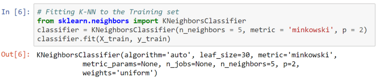 Here we will be using euclidean distance so we have set p = 2