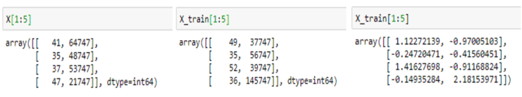 X(data) -> X (After train_test_split) -> X (After feature scaling)